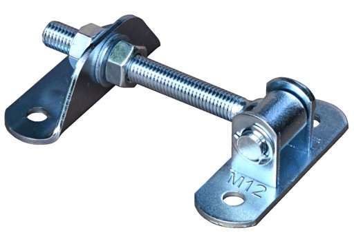 Zawias stalowy regulowany DWUSTRONNIE PRZYKRĘCANY z dwoma płytkami stalowymi 90x30 o grubości 3 mm oraz śrubą M12 o długości gwintu 95 mm.