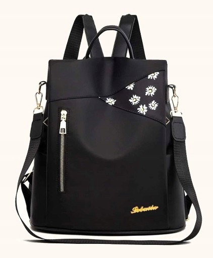 Рюкзак черный 2в1 женский цветочный рюкзак сумка элегантный городской плечо сумка