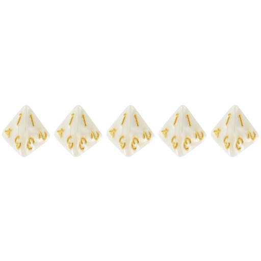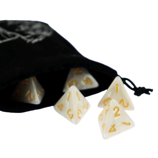 Komplet pięciu kości czterościennych. Niezwykle wysoka jakość odlewu, precyzja żłobienia oraz malowania numerów czynią z nich podstawowy wybór dla wielu graczy, zarówno początkujących, jak i zaawansowanych.