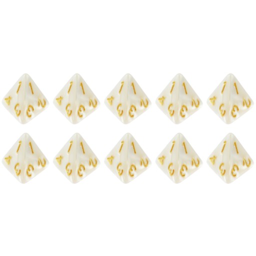 Komplet dziesięciu kości czterościennych. Niezwykle wysoka jakość odlewu, precyzja żłobienia oraz malowania numerów czynią z nich podstawowy wybór dla wielu graczy, zarówno początkujących, jak i zaawansowanych.