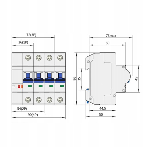 - Zabezpieczenie nad-prądowe: 2x 16A