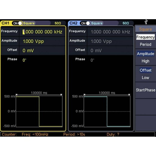- Zakres częstotliwości (kwadrat): 1 μHz - 50 MHz