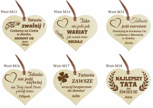 - zwrot na zawieszce, np. Tatusiu, Mamusiu (na górze serduszka)