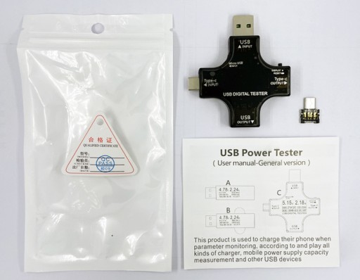 Uniwersalny tester przeznaczony do testowania ładowarek, zasilaczy, power banków, przewodów itp. ze złączami USB i USB-C.