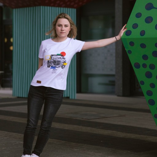 Koszulka ma prosty fason, wąski dekolt i krótkie rękawy. Została zaprojektowana i uszyta w Polsce, w szwalni pod Wrocławiem. Na koszulce znajduję się również skórzana naszywka z logo kolekcji #KochamyMercedesy.