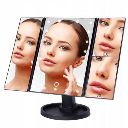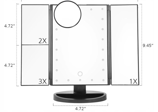 Lusterko jest zaprojektowane z 2 bocznymi skrzydłami, dzięki czemu dodatkowo mamy do dyspozycji dwukrotne oraz trzykrotne powiększenie; już nie musimy bardziej przysuwać się do lusterka by zrobić idealnie równą kreskę nad okiem, wystarczy skierować wzrok na boczne lusterko i wykonać makijaż.