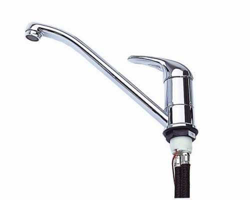 Kran Comet Roma Long to niemieckiej produkcji kran z mikrowłącznikiem do ciepłej i zimnej wody, Kran jest dedykowany do kamperów, przyczep kempingowych, łodzi, domków holenderskich i innch,