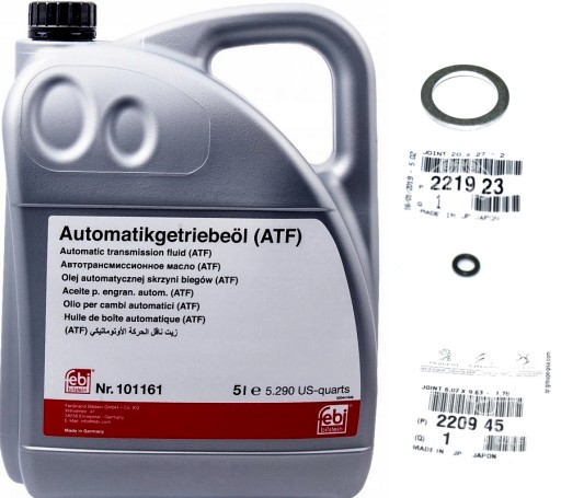Zestaw wymiany oleju w automatycznej 6-stopniowej skrzyni biegów AF40 - 5L w opakowaniach 1L 29934 oleju w komplecie z oringiem i podkładka