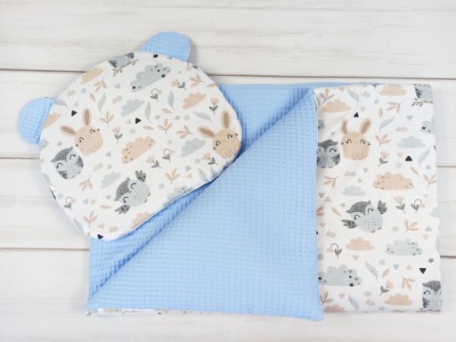 - kołderka i poduszka są dwustronne - z jednej strony bawełna z pięknym wzorem, z drugiej strony bawełna w najmodniejszym splocie wafel.