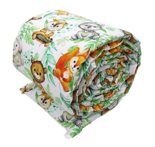 Wypełnienie stanowi włóknina antyalergiczna. Zewnętrzna strona ochraniacza to 100% bawełna.Ochraniacz posiada przyszyte troczki, dzięki którym mocujemy go do łóżeczka.