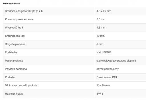 Wkręt samowiercący do mocowania blachodachówki w podłożu drewnianym ,