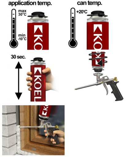 - Przed użyciem upewnić się, czy puszka ma temperaturę dodatnią (optymalna +20°C ). Temperatura aplikacji od -10°C do +30°C.