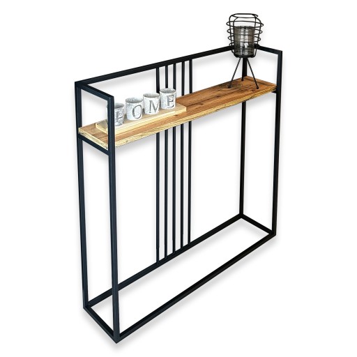 CZARNA KONSOLA, TOALETKA STYL INDUSTRIALNY,LOFT 80x20x80 Z DODATKOWYMI OZDOBNYMI PRĘTAMI