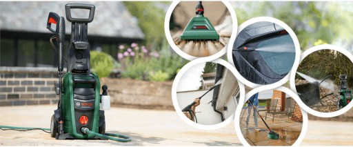 Myjka wysokociśnieniowa UniversalAquatak 135 umożliwia szybkie, wszechstronne i łatwe czyszczenie. Dysza Trio umożliwia wykonanie szeregu prac: od mycia mebli ogrodowych do czyszczenia rynien. Ustawienie strumienia wachlarzowego, obrotowego i punktowego pozwala dopasować działanie dyszy do indywidualnych wymagań każdej pracy. Oszczędź czas przy myciu samochodów dzięki wysokociśnieniowej pianownicy o pojemności 450 ml. Rozkładany uchwyt i duże koła oferują większą mobilność i łatwiejsze przechowywanie. Cichszy silnik pompy zwiększa komfort pracy. Połączenia wtykowe typu Push-fit i wygodny sposób przechowywania pistoletu natryskowego ułatwiają pracę.