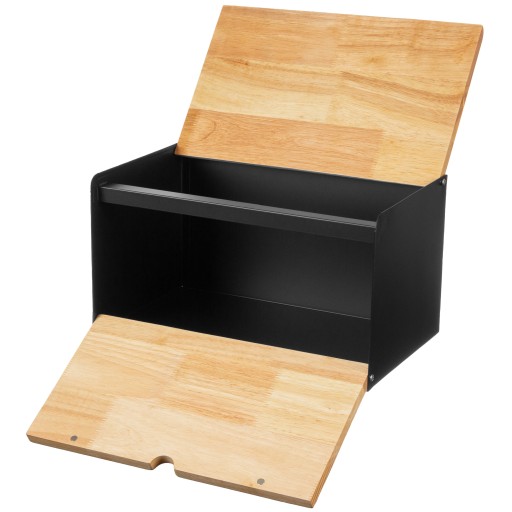 - Chlebak stalowy w kolorze czarnym z drewnianymi pokrywami