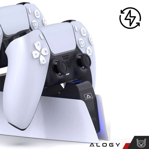 Pełne naładowanie dwóch kontrolerów PS5 za pomocą stacji dokującej Alogy trwa ok. 2.5 godziny. Czas ten może się różnić w zależności od poziomu rozładowania akumulatorów w kontrolerach przed podłączeniem do stacji.