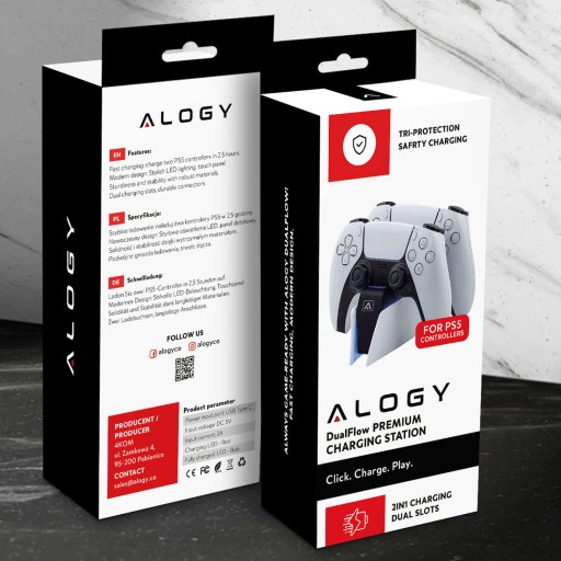 Stacja dokująca Alogy jest specjalnie zaprojektowana dla kontrolerów PlayStation 5 i jest kompatybilna tylko z tym modelem. Nie jest przeznaczona do ładowania kontrolerów z innych konsol, takich jak PlayStation 4 czy Xbox, ze względu na różnice w kształcie i wymaganiach ładowania.