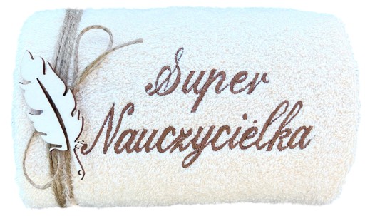 Piękny i praktyczny prezent dla wychowawczyni, nauczycielki, przedszkolanki, dyrektor - ręcznik kąpielowy z haftem - całość pięknie zapakowana.