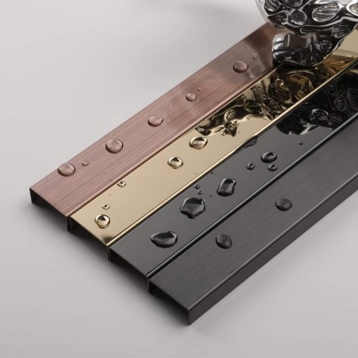 Profile wykonane są z wysokiej jakości stali nierdzewnej kwasoodpornej. Listwa zyskuję swoją barwę dzięki zaawansowanej technologii koloryzacji stali - PVD. Jest to gwarantem najwyższej jakości produktu.