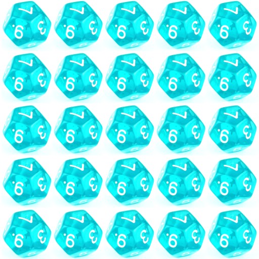 Komplet dwudziestu pięciu kości dwunastościennych. Niezwykle wysoka jakość odlewu, precyzja żłobienia oraz malowania numerów czynią z nich podstawowy wybór dla wielu graczy, zarówno początkujących, jak i zaawansowanych.