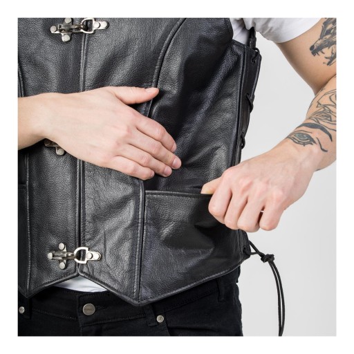 Możliwa regulacja obwodu klatki, pasa i bioder za pomocą skórzanych sznurków.