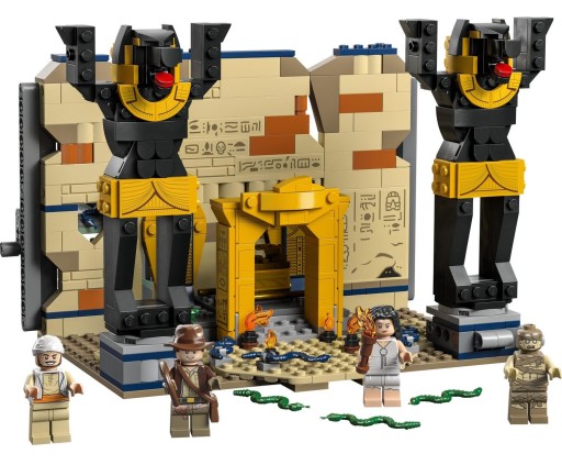 - Cztery minifigurki — Indiana Jones™ ze swoim słynnym kapeluszem i biczem, Marion Ravenwood™, Sallah™ i mumia. Jest też dużo węży: na podłodze i przechodzących przez ścianę