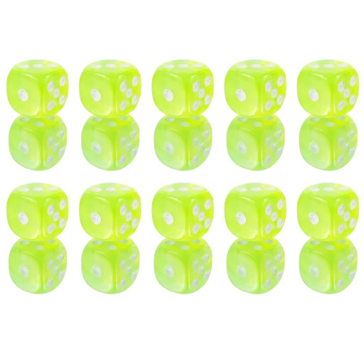 Komplet dziesięciu kości sześciościennych. Niezwykle wysoka jakość odlewu, precyzja żłobienia oraz malowania numerów czynią z nich podstawowy wybór dla wielu graczy, zarówno początkujących, jak i zaawansowanych.