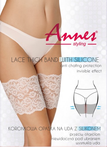 Wypróbuj koronkową opaskę na uda przeciw otarciom od ANNES i odkryj nowy poziom komfortu i stylu. Bądź pewna siebie, poczuj się wyjątkowo i ciesz się każdym dniem bez ograniczeń!