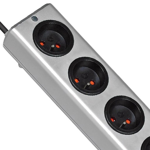 ✳️ Gniazda przedłużacza wyposażone w dodatkowe zabezpieczenie przed przypadkowym dotknięciem (czerwona zaślepka).