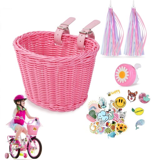 KOSZYK NA ROWER WSTĄŻKI DZWONEK NAKLEJKI ZESTAW DLA DZIEWCZYNKI KOSZ RÓŻ