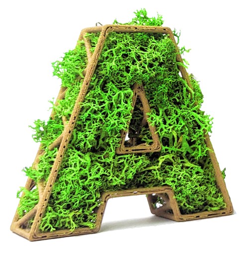 - Szkielet litery wypełniony oryginalnym mchem chrobotkiem - reniferowym