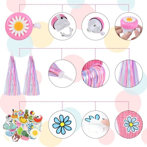<> Uniwersalność: Kosz oraz dzwonek rowerowy pasuje do większości rowerów dziecięcych, co sprawia, że są wszechstronne i praktyczne.