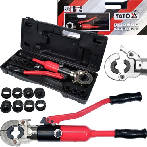 Ręczna praska hydrauliczna marki YATO, przeznaczona do zaciskania złączek na rurach PEX-AL-PEX, PERT-AL-PERT.