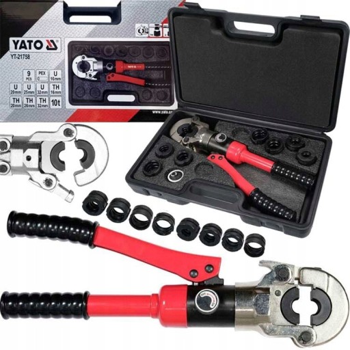 Ręczna praska hydrauliczna marki YATO, przeznaczona do zaciskania złączek na rurach PEX-AL-PEX, PERT-AL-PERT.