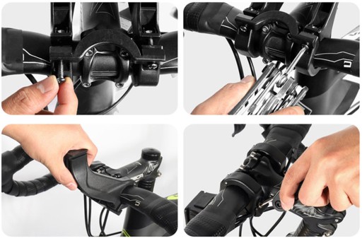 Montaż torby jest możliwy dzięki specjalnemu pałąkowi, który montujemy na kierownicy naszego roweru. Minimalna średnica kierownicy to 3 cm. Po zamontowaniu pałąku wystarczy włożyć torbę za pomocą klipsa.