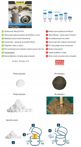 Uniwersalny Wkład Filtracyjny do Pomp Basenowych i Innych w Postaci Kulek Filtracyjnych CleanPlus