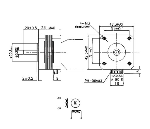 Parametry silnika są znormalizowane i zgodne z powszechnie przyjętym modelem Nema17 (Nema42).