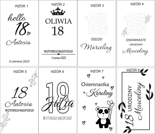 Tylko wzór nr 3 i 4 ma naklejoną 18 jak na zdjęciu głównym - reszta wzorów jest w całości grawerowana.