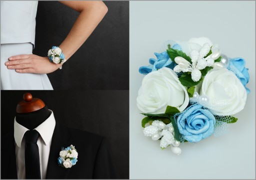 Wykonane z naturalnie wyglądających różyczek oraz efektownych dodatków florystycznych wykończonych okazałą wstążką gwarantują oryginalny wygląd na weselu czy studniówce.