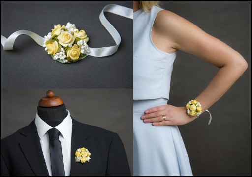 Wykonane z naturalnie wyglądających różyczek oraz efektownych dodatków florystycznych wykończonych wstążką gwarantują oryginalny wygląd na weselu czy studniówce.