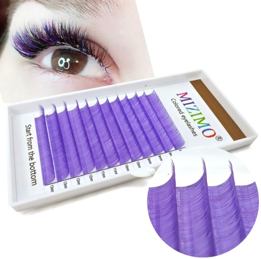 Ресницы цветные 8-13мм, изгиб D, 12 полосок ФИОЛЕТОВЫЕ.