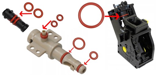 Zestaw uszczelek przeznaczony jest na zawór wody znajdujący się za blokiem zaparzającym oraz do bloku modułu zaparzającego.