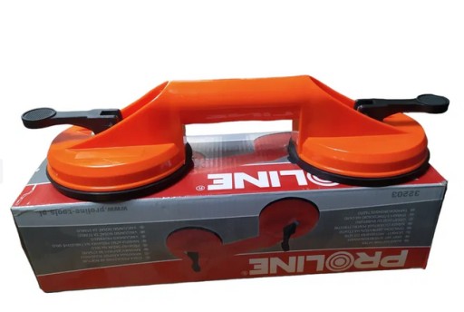 Uchwyt do szyb marki Proline, plastikowy korpus. Dzięki silnej przyssawce uruchamianej poprzez umieszczoną w rączce dźwignię, zapewnia mocny i pewny uchwyt. Świetnie spisuje się przy montażu szyb, np. samochodowych, jak również przy przenoszeniu i montażu innych dużych i gładkich przedmiotów, np. płatów plexi, blatów itd.