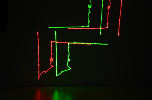 Wiązki laserowe z modułów laserowych są przekształcane w fajne ruchome wzory i figury.