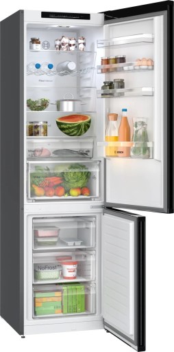 Przestronne szuflady systemu VitaFresh XXL oferują mnóstwo miejsca oraz idealne warunki do przechowywania świeżej żywności, dzięki obniżonej temperaturze i idealnie dobranemu poziomowi wilgotności. Ryby i mięso dłużej zachowają świeżość w temperaturze bliskiej 0°C. Owoce i warzywa dzięki odpowiednim warunkom będą w dobrej kondycji zachowując cenne witaminy i pozostaną świeże na dłuższy czas. Więcej jedzenia, mniej marnowanego jedzenia z BOSCH KGN392XCF.