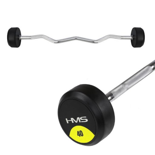 GSL HMS - sztanga / gryf stały, z obciążeniem gumowanym o wadze 10, 15, 20, 25, 30, 35, 40 lub 50 kilogramów.