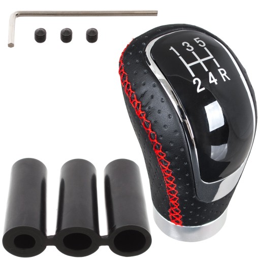 Kolor: czarna skóra + czerwona nić + tulejka w dolnej części gałki w kolorze SILVER (matowy chrom)