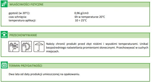 Wszystkie dane techniczne są wartościami orientacyjnymi. Radzimy przetestować materiał, aby upewnić się co do przydatności w określonym zastosowaniu. Producent zastrzega sobie prawo do poprawiania produktu i zmiany warunków technicznych z możliwością dokonania zmian wewnątrz specyfikacji.