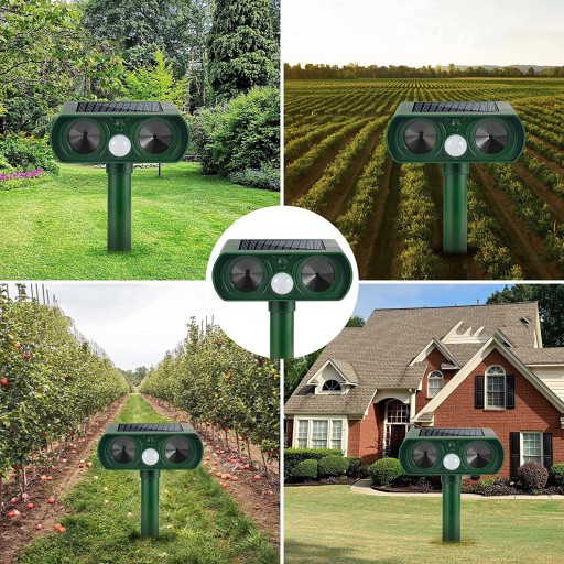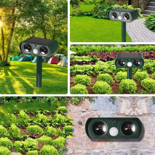 【Bezpieczny i przyjazny dla środowiska】 Nie zawiera składników chemicznych, które stanowią zagrożenie dla zdrowia człowieka. Pasywne czujniki podczerwieni wykrywają i uruchamiają ludzkie ruchy. Głośniki ultradźwiękowe sprawiają że dźwięk zwierząt wydzielają i odrzucają zwykłe szkodniki na świeżym powietrzu.