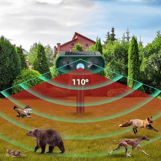 ◆ Pasywny czujnik podczerwieni (PIR) wykrywa ruch i wyzwala głośnik ultradźwiękowy emitujący dźwięk, który ludzie nie słyszą, ale goni na świeżym powietrzu jak psy, koty, jelenie, szopy pracze, myszy, skunksy itd.